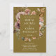 Celebre con estilo esta elegante invitación a la ducha de novia, con flores de color agua en un fondo de oliva dorado. Los ricos tonos tierra lo convierten en la elección perfecta para las duchas rústicas, boho o modernas de duchas nupciales, ya sea que esté recibiendo un fiesta de jardín de primavera, un brunch de verano, una acogedora reunión de otoño o un evento de invierno de moda. Esta invitación al personalizable incluye espacio para los detalles de su evento y está disponible como tarjeta impresa y como una cómoda descarga digital para compartirla fácilmente con los invitados.
