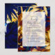 Invitación de ducha de novia o de bebé que presenta un patrón de jungla lujosa en tonos de azul, borgoña y dorado.