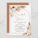 Invitación de ducha de novia con caligrafía moderna de falso oro rosa en estilo bohemio con dos arreglos florales naturales y de terracota con hierba de pampas y un arco de terracota.