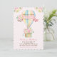 ¡Encima de, encima de y lejos! ¡Una niña está en la manera! ¡Celebre la llegada próxima de su pequeña con esta invitación hermosa del globo del aire caliente!