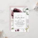 Esta invitación a la ducha de parejas románticas florales es perfecta para una elegante ducha de boda. El moderno diseño rústico de boho cuenta con románticas flores acuáticas en tonos suaves de burdeos, malva, rosa y crema blanca con hojas verdes.