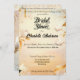 Esta lujosa invitación a la ducha de novias presenta suaves tonos marfil y oro con delicadas flores flotantes, acentos de encaje y cintas brillantes. La serena paleta de colores y el diseño caprichoso crean un ambiente mágico, perfecto para una celebración personalizada y elegante de la ducha de novias.