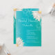 Nuestra hermosa ducha de novia azul turquesa es el punto de partida perfecto para su ducha nupcial de primavera, ducha de novias de verano, ducha nupcial o ducha de novia de invierno que su novia y su invitado amarán. Nuestras elegantes invitaciones a la ducha de matrimonio están decoradas con flores de margarita blancas en un moderno fondo azul turquesa. Visita nuestra tienda para elegir colores adicionales en esta invitación a la ducha de boda.