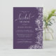 Esta invitación incluye flores dibujadas en línea blanca y caligrafía personalizado. El color púrpura es el telón de fondo perfecto para esta invitación.