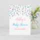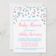 Invitación de encargo de la fiesta de bienvenida al bebé de los gemelos del neutral o del muchacho y del chica del género del texto en modelo azul claro, rosado y de plata del confeti. Observe por favor el confeti es efecto fotográfico solamente.
