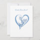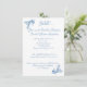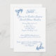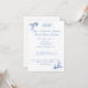 Invitación a una ducha de novia, de temática azul, con flores acuáticas en la parte delantera y el nombre de la futura novia y un corazón de acuarela azul en la parte posterior. Puede ser personalizado e impreso en muchos artículos y productos de papel de Zazzle.