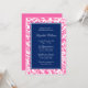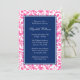 Invitaciones a la ducha de novia color rosa y azul marino. Con un moderno y florido patrón de damasco de remolinos. Personaliza fácilmente tu evento.