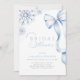 Fijar el tono para una celebración mágica con esta Invitación a la ducha de novia azul invernal. Diseñado con suaves cintas de color azul y espumosos copos de nieve, este elegante tema de invierno es perfecto para honrar a la futura novia. Una moda y una elección atemporal para una ducha nupcial en temporada fría.