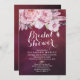 Invitación Ducha nupcial Boho Floral Fethers Burgundy Red