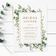 Esta invitación a la ducha de boda con una decoración de color con eucalipto pintado, hojas verdes y un marco rectangular dorado. Para una personalización más avanzada de este diseño, haga clic en el enlace "Personalizar más adelante". También están disponibles los elementos coincidentes.