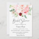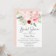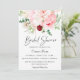Elegantes flores de jardín acuáticas y ramas botánicas en tonos modernos de rosa y verde, invitación a la ducha de novia. La parte posterior de la tarjeta, mostrada en color rosa pétalo, se puede personalizar.