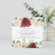Diseño de texto moderno con flores de cascada pintadas a mano que incluyen un crisantemo rojo burdeos de marsala con rosas blancos ruidosos y un ranunculus de color claro combinado con varias ramas de hojas y bayas. Sencillo y elegante, con un toque romántico Boho. El fondo es blanco (pero se puede cambiar). Si se cambia el área de texto seguirá siendo blanca. En el reverso está un suave patrón de marsala de vino de borgoña (que también se puede cambiar) con una franja de hojas de follaje. SE PUEDE ENCONTRAR UNA COLECCIÓN COMPLETA AQUÍ (copie y pegue el enlace en su navegador: https://bit.ly/2MAf83r ) Art copyright Audrey Jeanne Roberts, todos los derechos reservados.