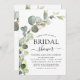 Celebra el estilo de la futura novia con nuestra magnífica invitación a la ducha de novias con eucalipto. Este bonito diseño cuenta con elegantes hojas de eucalipto sobre un fondo suave y neutro, lo que lo convierte en la elección perfecta para una ducha de novia con temática botánica. Haga que el día especial de la futura novia sea aún más memorable con nuestra impresionante invitación a la ducha de novias con eucalipto. Con su hermoso diseño y opciones de personalizable, es la manera perfecta de compartir la alegría y la emoción de los próximos nupciales con la familia y amigos. ¡Elige la tuya!