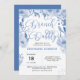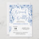 Invitación Ducha nupcial con flores azules de bronce y burbuj