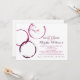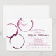 Una invitación de ducha nupcial chic y creativa con anillos superpuestos de mancha de copa de vino borgoña en un fondo blanco limpio. La escritura de caligrafía y la tipografía serif elegante en tonos de borgoña coordinados crean una estética sofisticada inspirada en la bodega. Perfecto para una ducha temática de vino o celebración de almuerzo. Todo el texto es totalmente editable para adaptarse a los detalles de su evento.