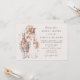 La romántica invitación a la ducha de novias incluye una novia con una llama adornada con flores.