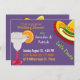 La invitación a la ducha de boda de una pareja divertida se hace en un colorido tema mexicano, con un fondo violeta y un sombrero personalizado en la parte superior y un vaso de margarita en la parte inferior izquierda. El texto multicolor, en la parte delantera y trasera, es totalmente personalizable y listo para personalizar para su evento.