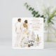 Las invitaciones a la ducha nupcial incluyen morena, novia de piel oscura y novio para estar en purpurina dorado con regalos de registro de novias y motivo boda.