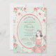 Una ama de casa retro con su libro de cocina sobre un fondo de rosa vintage en tonos menta, verde, rosa y marfil. Perfecto para una ducha nupcial, una ducha de cocina o cualquier fiesta temática de cocina.