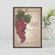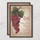 Un bonito grupo de uvas rojas invita a sus huéspedes a disfrutar de una magnífica ducha nupcial. Perfecto cuando la novia es una amante del vino o el evento se llevará a cabo en una bodega o viñedo. En este diseño, las uvas y las hojas tienen un efecto texturado y parecen brillar sobre un fondo que recuerda a un pergamino envejecido. Este diseño, muy antiguo en su estilo, hace una invitación única y muy personal para su novia.