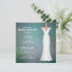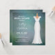 Bridal Shower Elegant Soft Green Invitation diseñada con un boceto de traje de novia sobre un suave fondo verde con texto blanco. El texto de la invitación incluye: El nombre de la novia, la fecha de ducha, la hora, la ubicación y los detalles del host y RSVP. El lado inverso es un fondo verde suave a juego. Para personalizar, simplemente inserte sus detalles en nuestra plantilla sencilla, reemplazando el texto de ejemplo.