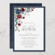 Invitación Ducha nupcial floral azul borgoña marina