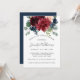 Con una paleta de colores deliciosamente ricos de burdeos, azul marino, rosa y verde ondulado, esta moderna invitación a la ducha de novias tiene un ramo de flores radiantes que se derrama desde lo alto del diseño sobre el texto de tu personalizado. El ramo incluye rosas peonías, bayas, eucaliptos y vegetación arbolada. La plantilla de texto es una combinación popular de elementos serif elegantes mezclados con la cara de tipo manuscrito para el nombre de la novia. La parte trasera de la invitación es un azul marino macizo que combina las flores de la marina del ramo. Personalice el texto con los detalles de su ducha de novia.