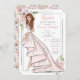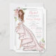 La invitación a la ducha de novias florales incluye personalizable novia para estar en traje boda purpurina con elección de rubia, marrón, pelo ardor y varios tonos de piel.