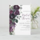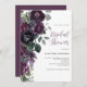 Celebre el estilo de la futura novia con esta elegante invitación a la ducha de novias con flores de acuarela dramáticas en púrpura profundo, negro y suave vegetación. El diseño floral gótico y monótono crea un ambiente romántico y sofisticado, perfecto para las novias modernas que adoran los botánicos oscuros y el papel de moda. Personalice con el nombre de la novia y los detalles del evento para una impresionante invitación que marca el tono para una celebración inolvidable.