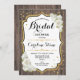 Ducha De Novias De Madera Rústica. El diseño es elegante, con un diseño de color dorado purpurina y madera marrón oscura. Cuenta con rosas blancas y fuente de script. Perfecto para una elegante ducha casera. Personalizar con sus propios detalles.