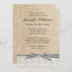 Una elegante invitación a la ducha de novia en burlap. Presenta un diseño rústico con encaje blanco y una cinta gris.Los diseños son ilustraciones/gráficos impresos - NO RIBBON REAL. Perfecto para una ducha de novia occidental, una ducha de campo, una ducha de novia al aire libre y mucho más.
