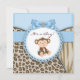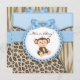 El leopardo marrón y el tigre adorables imprimen las invitaciones a la ducha de bebé mono azul. Esta tierna invitación a la ducha de bebé de mono marrón y azul es fácilmente personalizada para tu evento, agregando detalles del evento, estilo de fuente, tamaño de fuente y color, y redacción.