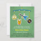 ¡Celebre pronto la llegada del bebé de la estrella del rock con esta invitación de la fiesta de bienvenida al bebé del rock-and-roll! El diseño tiene juguetes colgantes de la cuna del bebé substituidos por los diversos elementos retros del rock como el signo de la paz, la muestra de la mano del rock-and-roll, una guitarra eléctrica con la nota musical y la estrella y un disco de vinilo con forma del corazón en el centro. La paleta de color de azul, de amarillo, el tinte de rojo y de negro sobre un verde texturizaron el fondo de las tonalidades. ¡También grande para cualquier música o estrella del rock o celebración de la fiesta de bienvenida al bebé del tema de la escuela vieja! Personalice fácilmente con sus detalles de la fiesta de bienvenida al bebé.