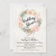 Rústico diseño de tarjetas de invitación a la boda bohemia bohemia con rosas rosados/melocotones y hojas de eucalipto con fondo de madera blanca lavada y monograma con esquina floral en la parte posterior.