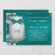 Invitación Ducha Verde azulada monogramada de luciérnagas