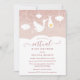 Con una adorable cigüeña que lleva una entrega muy especial, sobre un fondo de brillo de rosa dorado y rosa claro, esta linda invitación de ducha de bebé virtual, baby shower o ducha de parejas por correo es perfecta para todos los pequeños que están en camino. Agregue los detalles de su celebración en texto elegante para crear la invitación perfecta. Diseñado por Thisisnotme