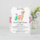 Invitación Ducha Virtual de Bebé con Llama Rosa de Chevron Br