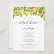Esta elegante invitación virtual en línea para boda o ducha de bebé con limones y flores con hojas verdes puede ser personalizada con los detalles de su celebración. Diseñada por Thisisnotme©