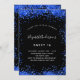 Invitación a una fiesta de 16 cumpleaños, joven y de moda. Un fondo negro de moda. Decorada con purpurina falso azul real, chispas. Personalice y agregue un nombre y detalles del fiesta. El nombre se escribe con un guión de estilo con letras a mano.