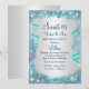 Invitación de cumpleaños dulce 16 azul y plata. Diseño elegante de perla y joya bajo el mar. Tenga en cuenta: todas las imágenes planas, no tienen joyas reales ni purpurina.