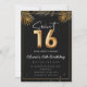 Dulce 16 decimosexto Balón de cumpleaños con hojas tropicales doradas Invitación de fiesta Adorable dulce 16 invitaciones de fiesta de cumpleaños en un diseño de globo negro y dorado de 16 con hojas tropicales doradas. Personalizar con los detalles de su fiesta y envíelos por correo a su familia y amigos invitándolos a celebrar su 16 cumpleaños.