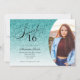 Invitación Dulce 16 cumpleaños Aqua Blue Purpurina Glam Photo