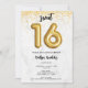 Adorables invitaciones dulces para fiestas de 16 años en un diseño de globo negro y dorado de 16 globos sobre papel falso de mármol gris. Personalizar con los detalles de su fiesta y envíelos por correo a su familia y amigos invitándolos a celebrar su 16 cumpleaños.