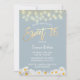 Sweet 16 Modern Dusty Blue String Ilumina Invitaciones De Flores De Marfil.