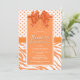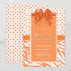 Invitación a una fiesta de cumpleaños de 16 años, naranja y dulce blanco, con un arco festivo, puntos de polka y rayas de cebra mientras el texto está enmarcado con un falso borde purpurina.