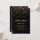 Para un elegante dulce 16, 16 cumpleaños. Un elegante fondo negro. Decorada con polvo de purpurina de oro falso morado y una cuerda de luz dorada. Personalice y agregue un nombre, edad y detalles del fiesta. El nombre se escribe con un guión de estilo con letras a mano