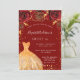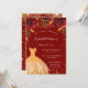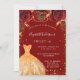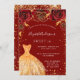 Invitación Dulce 16 purpurina dorado rojo vestido floral