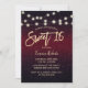 Dulce 16 Cadenas Purpurinas Borgoña Rojas Modernas Iluminan Invitaciones.