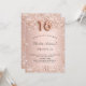 Para una elegante fiesta de 16 y 16 años. Fondo subió de gradiente dorado. Decorado con rosa de oro falso polvo purpurina. Personalice y agregue un nombre y detalles del fiesta. El nombre se escribe con un guión de estilo con letras a mano. El número 16 se escribe con un tipo de letra de estilo globo.