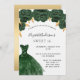 Invitación Dulce 16 vestido de oro verde esmeralda vestido de